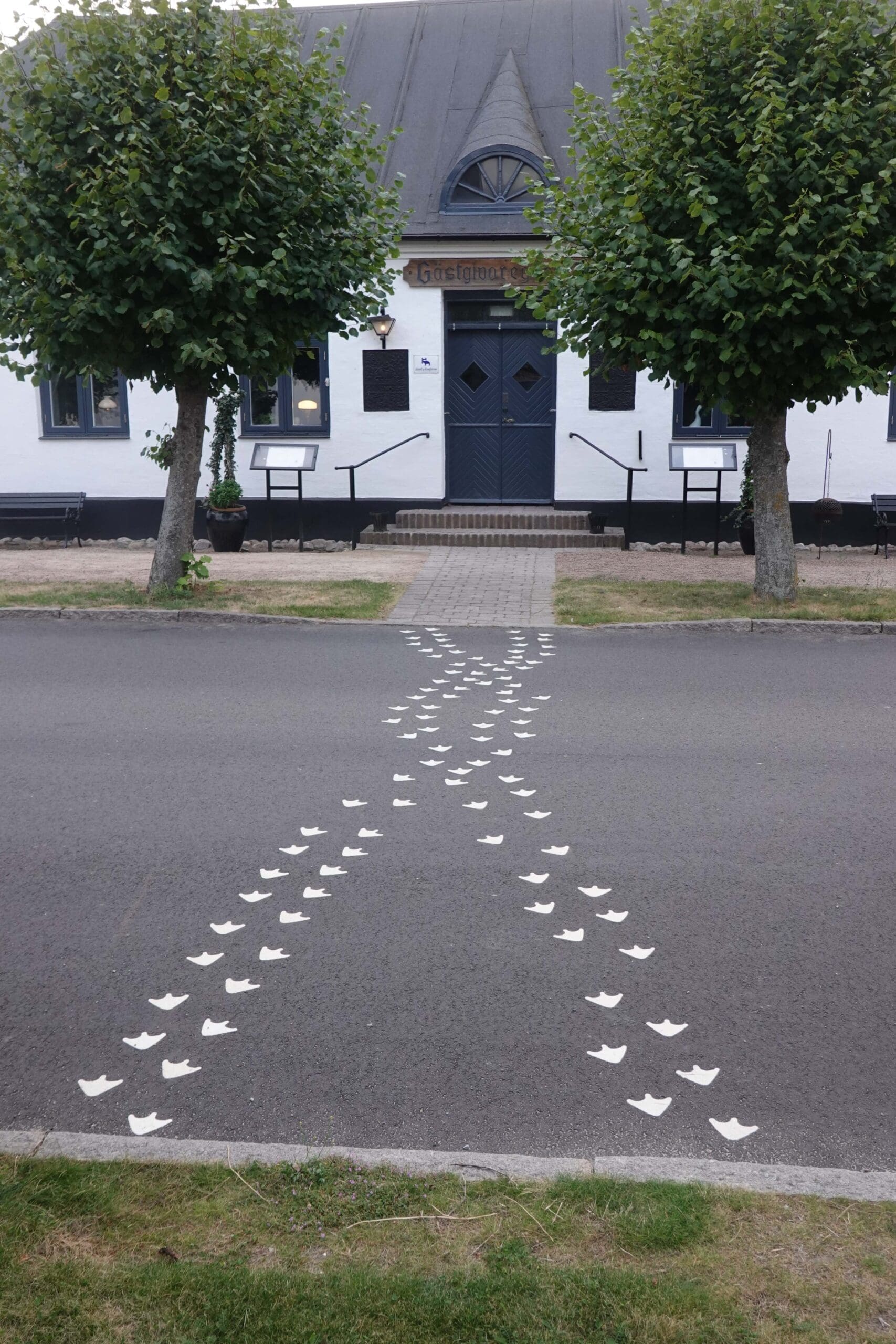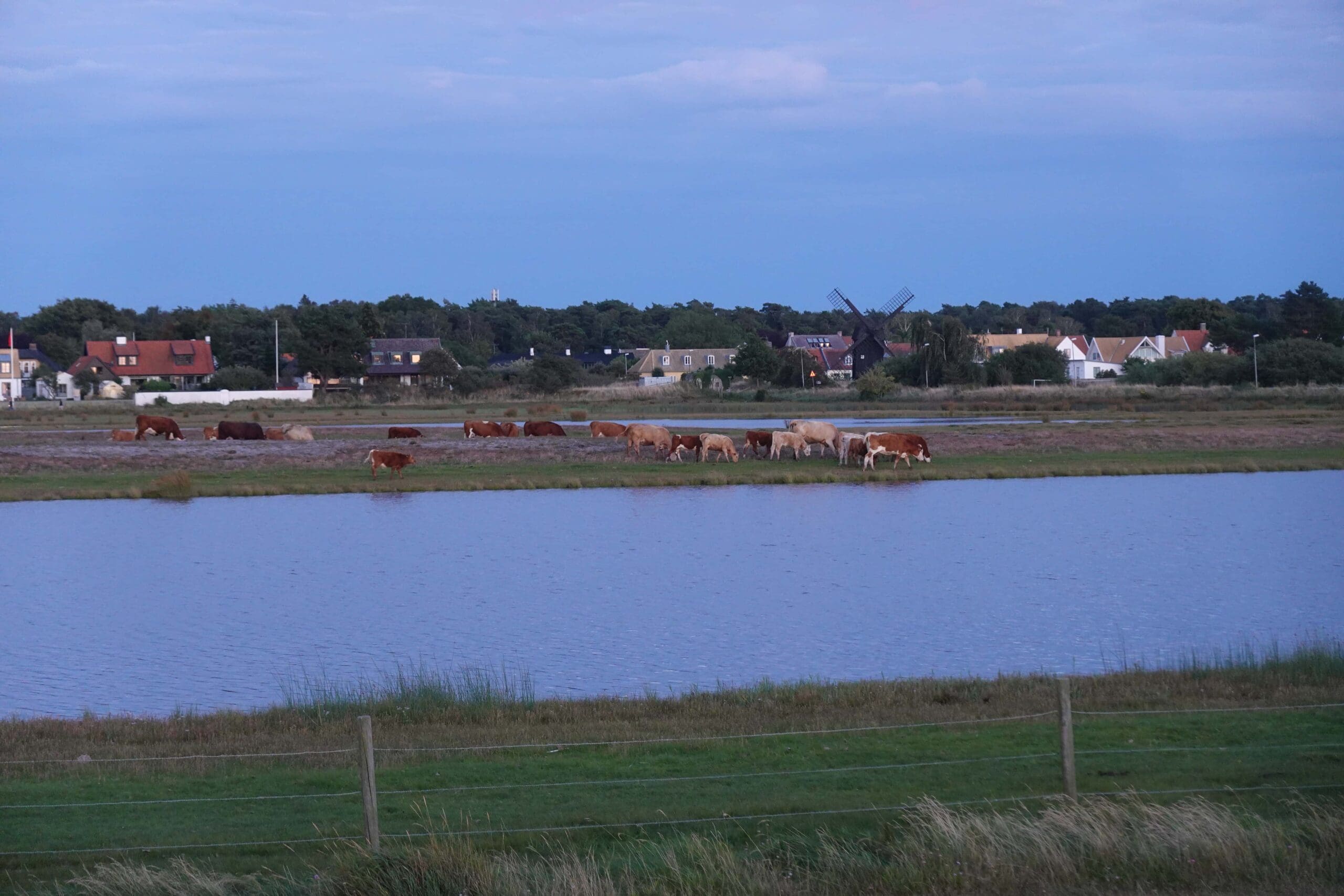 Gässen har ett eget övergångsställe vid Skanörs Gästis. Men, vart har Herr Gårman-skylten för gässen tagit vägen? Några gäss såg vi inte heller till.Studentgården. Minsann. Här hyrde jag och min dåvarande flickvän rum en gång. Huset donerades till studenterna vid Lunds universitet av den förra ägaren för att erbjuda ”tillfälle till studier, vila och rekreation under fri och otvungen samvaro”. Då var det väl det vi ägnade oss åt. Såg stängt ut och ett Facebook-inlägg antydde att huset var stängt för renovering.Funderar över hur vi tog oss dit. Var det månne med tåget, från Södervärn i Malmö hit till Skanörs gamla järnvägsstation? Jag vet att jag har åkt rälsbuss till Falsterbo någon gång, men det måste ha varit i något annat sammanhang, för järnvägen lades ned redan 1971 och Studentgården måste vi ha besökt runt 1980 någon gång. Den gången jag åkte tåg minns jag att det var mycket folk på det, som jag minns det, rätt långa tåget och det är väl också en nedläggning som många ångrar idag.Pär i vången. Huset fick sitt namn efter Per Jönsson som flyttade in 1886. Huset var då i behov av omfattande reparationsarbeten efter en stor översvämning 1872, så detta att vattnet tränger sig på är uppenbarligen inget nytt fenomen. Per lär ha hängt sig 1912. Som ett resultat av övermäktiga reparationsarbeten eller av andra skäl förefaller oklart. En upplänning kanske undrar vad en vång är. Wikipedia förklarar: ”En ”vång” är ett gammalt sydsvenskt ord för ett sammanhängande stycke odlad jord eller äng, en inäga eller ett öppet fält.” Det är ett ord som man stöter på här och där i ortsnamn i Skåne. I Landskrona t ex finns en stadsdel som heter Sandvången. Men, nu är vi i Skanör. Strax intill ligger Per i vången-vanningen, den grävda dammen som försåg gårdens djur med dricksvatten. Både den omgivande Stadsparken, liksom dammen, såg vanskötta ut och dammen var rätt igenvuxen. Ironiskt nog kunde man läsa följande på Vellinge kommuns informationstavla: ”För djuren som lever i dammen är det viktigt att vattenspegeln hålls öppen och att vanningen inte växer igen.” Dags att börja leva som man lär ut kanske…Min första tanke när jag såg midsommarstången var att den såg ut att ha hämtat lite inspiration från Arholma och Åland. Sedan läser jag att det ska vara en rekonstruktion av den midsommarstång som restes 1749 i samband med Carl von Linnés besök i Skanör. Så idag går den under namnet Linné-stången.Det börjar bli dags att röra sig tillbaka mot båten.Fast en liten omväg till. Ut på vad som kallas Flommen, området mellan bebyggelsen och stranden.Flommen består även av laguner och strandängar där både kor och en massa fåglar verkar trivas.Det har jag fått lära mig, att status på Falsterbonäset, det får man om man har en egen badhytt.Oj, är det så illa?Ja, solnedgången kan man fortfarande njuta av, men inte var det mycket kvar av stranden. I januari ledde en storm till att flera badhytter spolades ut i vattnet. Nu finns det tydligen planer på att anlägga erosionsskydd, så att inte ännu mer försvinner ut i havet.Tillbaka i hamnen kan vi glädja oss åt att något förblir vid vad det har varit. En fiskebåt verkar fortfarande livaktig.Och vilken fin gammal livräddningsbåt. Man kan undra om inte livräddarna också var livrädda när de gav sig ut i storm för en sjöräddningsinsats i en så liten och oskyddad farkost.