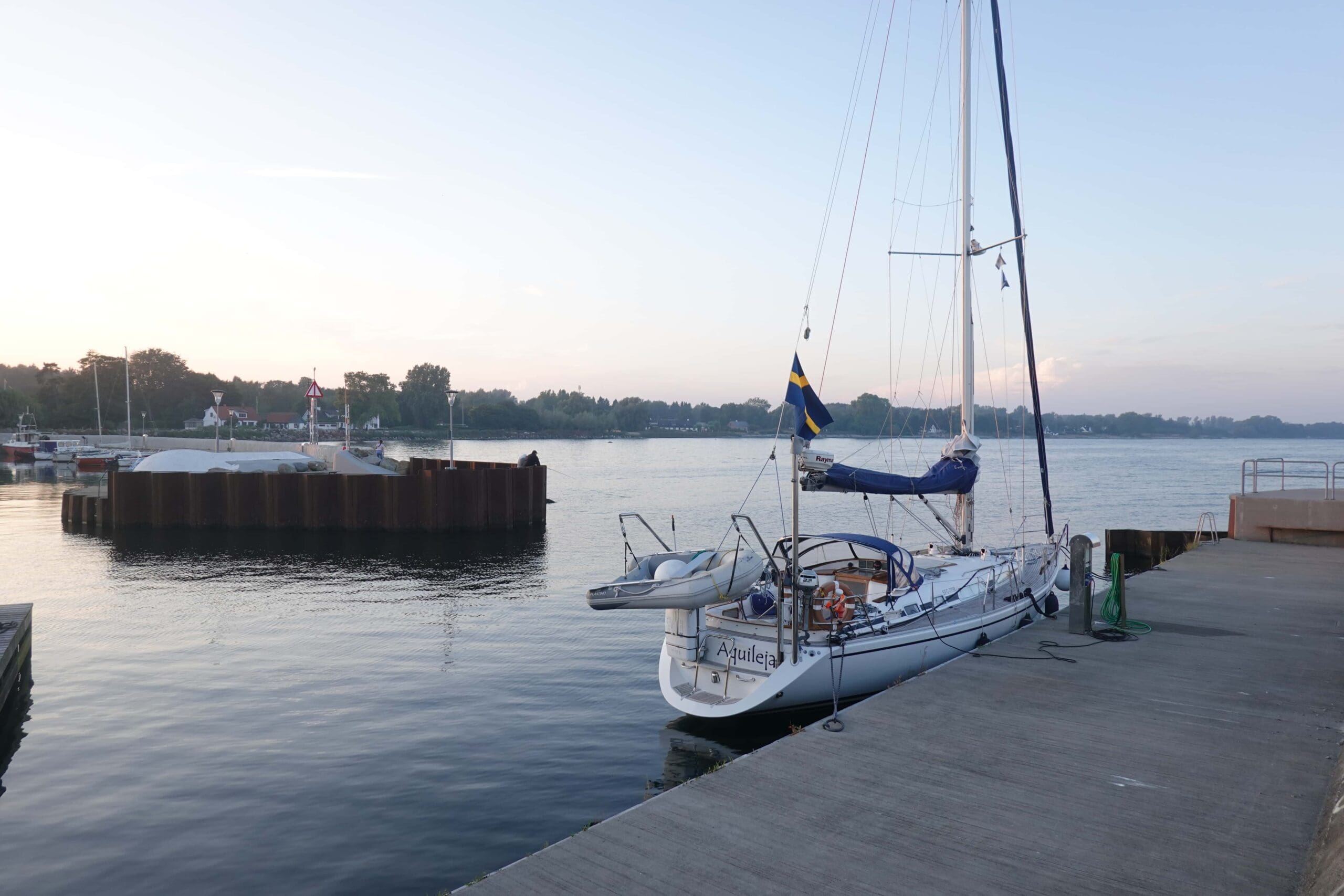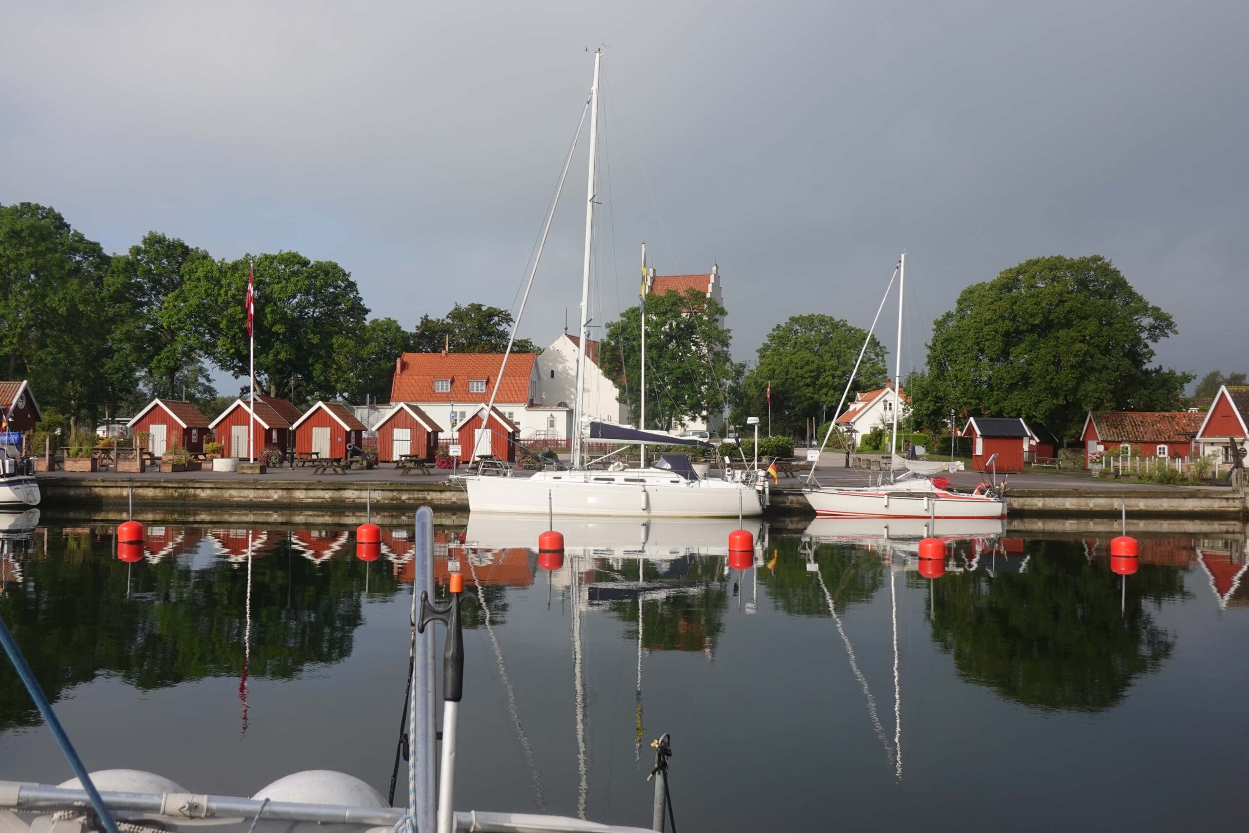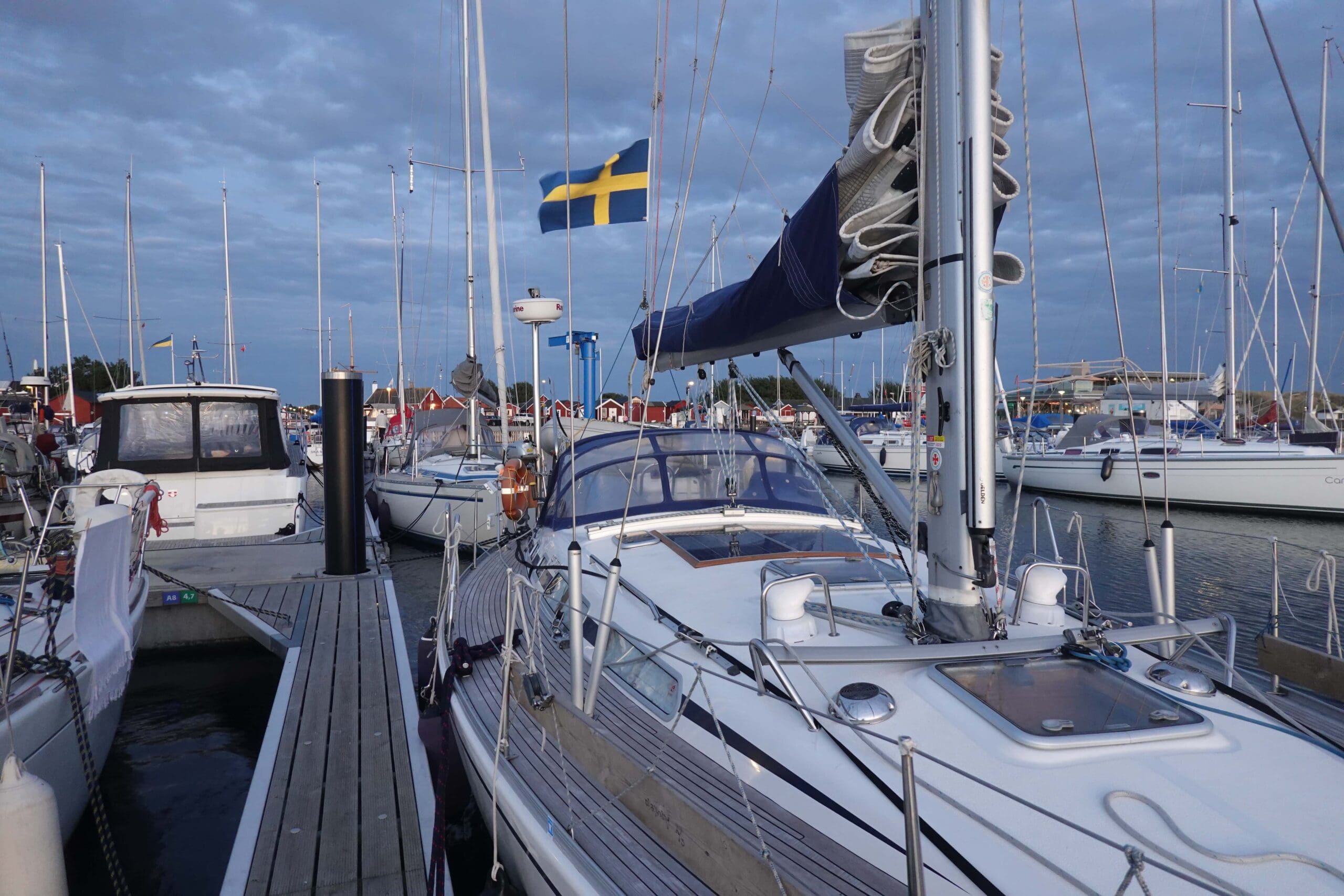 Det är lätt att glömma bort hur stor Hanöbukten är, detta Sveriges Biscaya. Det blev den här etappens längsta segling, 55,4 M. Under kvällen ökar vindstyrkan och det känns extra skönt att ligga i den trygga hamnbassängen.