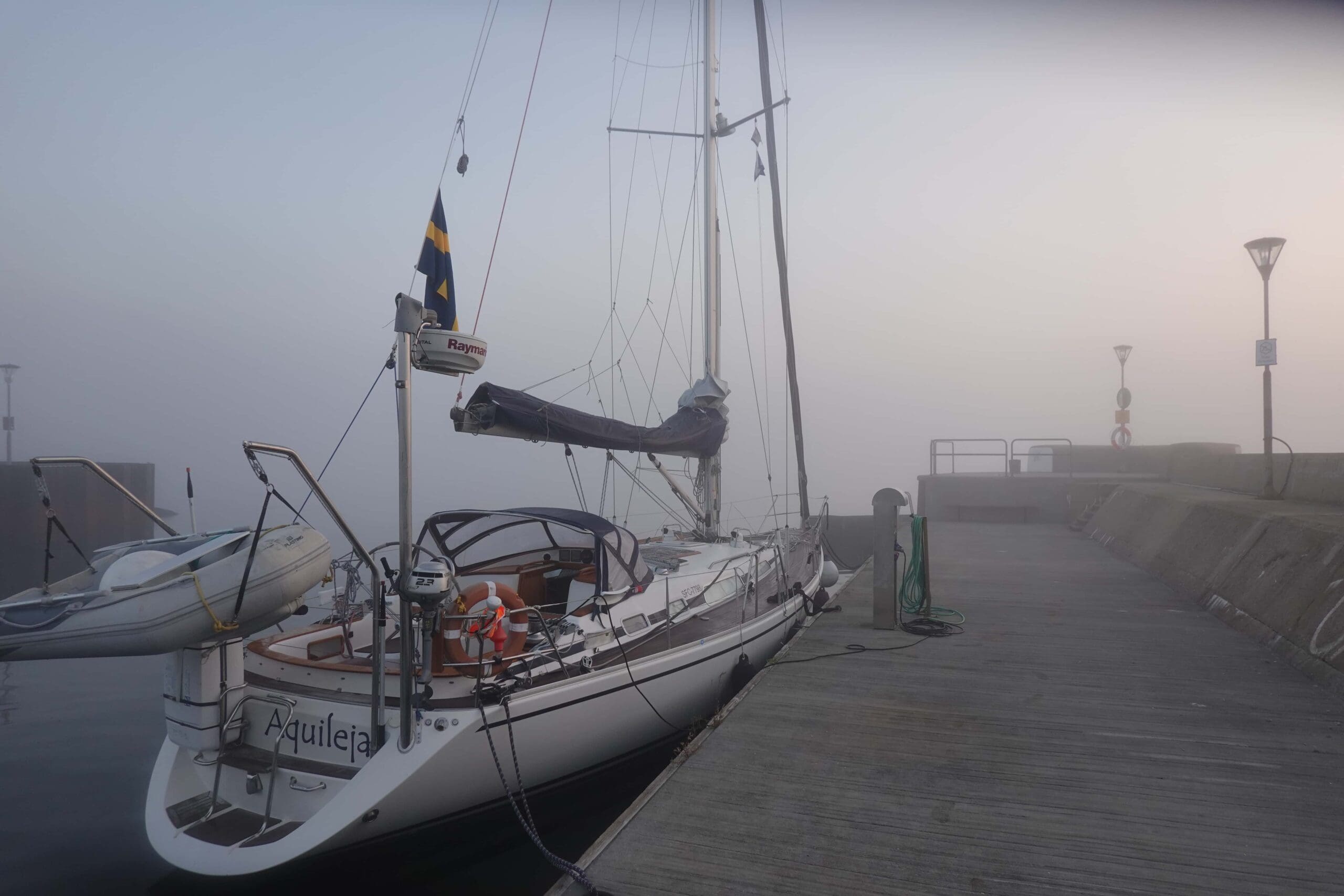 Är det så att även förbjuden fisk smakar bäst? Det såg så komiskt med detta gäng fiskare i direkt anslutning till förbudsskylten att jag inte kunde låta bli att kommentera det. – Ah den, den gäller åt andra hållet. Mmm, flexibel tolkningDen blanka fisken är tydligen en horngädda. Den skulle fiskaren lämna till illern, så den fick något att äta.Platt som en pannkaka? Nä, snarare böljande, kanske som en tsunamivåg ute till havs. Vi njuter av vyn bortom Ystad, någonstans mellan Nybrostrand och Hammars backar.Kvällen kryper på och det är vackert, lugnt och stilla. Såg inte ut att finnas några andra gästande båtar.Inga vackra vyer den här morgonen. Ändå är det något harmoniskt och meditativt med denna morgondimma.Inte nog med att det var dimma, det bubblade i vattnet och det var som små virvlar och algerna de blommade. Inget att bry sig om, bara att tända lanternorna, dra igång radarn och sätta på mistluren och sedan ge sig ut i det osynliga. På vägen ut fastnade vi, men botten är mjuk här och efter att ha dragit på lite mer gas gled vi ut över hindret.Rätt snart försvann dimman. Vinden började vakna till liv och vi kunde segla.Enligt kalendern är det sommarens sista dag. Det är varmt och skönt, 23° och shortsväder och plötsligen har jag en scandal beauty på fördäck. En nyfiken säl tittar upp på oss.En fråga jag ofta får är när vi kommer fram. Gårdagens och dagens segling illustrerar hur svår den frågan är att besvara med någon större precision. Igår seglade vi 40 M på 7 timmar och jag räknar alltid från det att förtöjningarna släpps eller ankaret är uppe till dess vi är fastknutna igen. Idag seglade vi knappt 34 M på 10 timmar, så vi kom fram rätt sent till Simrishamn, strax efter 18. Som belöning serverade Louise en jätteportion med kycklingsallad.Jag får ju medge att jag tummar på detta med detta med slow sailing, d v s att även få tid för avkoppling och upptäcktsfärder i de hamnar vi lägger till i. Nästa dag var vi ute på stan redan vid åtta. Louise hade aldrig varit i Simrishamn och jag tyckte i alla fall att hon borde få en glimt av stan.Ett av min tidigaste barndomsminnen måste vara här från Björkegrenska gården, vars namn stammar från en köpman och redare med samma namn. Jag läser att rederiet hade hela 89 fartyg när det var som störst, runt förr förra sekelskiftet. Min mamma vikarierade för vad som bör ha varit provinsialläkaren som, om jag förstått det rätt, hade sin mottagning i vinkeln vid den vita delen, nere till vänster. Jag bodde antagligen hos mormor och morfar i Landskrona, men skulle hälsa på henne där. Jag minns en del av färden dit, när vi närmar oss Simrishamn och ser ut över havet. Bilen minns jag som stor, så jag gissar att det var morfars/Öresundsvarvets chaufför som skjutsade dit mig. Idag låter det ju helt absurt, men så såg delar av min tidiga barndom ut. Andra tider. Jag minns hur jag lekte med nyckelpigor på gården och mamma har berättat om hur jag till hennes förfäran och till patienternas synbara förtjusning sprang omkring och stökade i väntrummet. Mamma var för övrigt långt ifrån färdig läkare, så man kan ju undra över hur adekvat vård hennes patienter fick.På Rosentorget har gamla rosor från hela Österlen samlats in. Vissa rosor har man inte lyckats artbestämma. Torget är väl värt ett besök, men det är ju en större upplevelse lite tidigare under säsongen. Jag minns när jag var där i slutet av juni en gång och det var som att gå omkring i parfymavdelningen på NK.En tanke slår mig: Varför bor jag i Åkersberga, när man kan bo så här mysigt?Skolan är döpt efter Nils Holgersson. Vad jag vet stannade väl Nils Holgersson aldrig till här i Simrishamn efter det att han flugit iväg från Västra Vemmenhög, en sex-sju mil väster om Simrishamn. Men, det kanske inte är så noga. Skolan beskrivs som att den har en kulturprofil och Selma Lagerlöf är ju kultur. Ibland räcker det med halmstrån…Klockan börjar bli lite efter nio och på en dryg timma hann vi se en hel del. Simrishamns centrum är inte så stort.Strax efter tio kastar vi loss med siktet inställt på Utklippan. Nu är det höst enligt kalendern och följaktligen lite blåsigare och med motvind dessutom känns det genast lite kallare.Sjön bygger upp sig och konstigt nog ser vi fler segelbåtar nu när vädret tuffat till sig lite jämfört med när vi seglade i behagligare väder längs Skånes sydkust. Seglingen till Utklippan kändes lång och vi spanade och spanade. Där är fyren! Ett vitt torn avtecknade sig mot horisonten. Men, fyren rör på sig och antar allt mer ett triangelformat utseende. Det var en segelbåt. Vi spanar vidare och jag påminns då också om att Utklippans fyr inte alls är ett vitt torn. Det är ju en röd Heidenstamare.