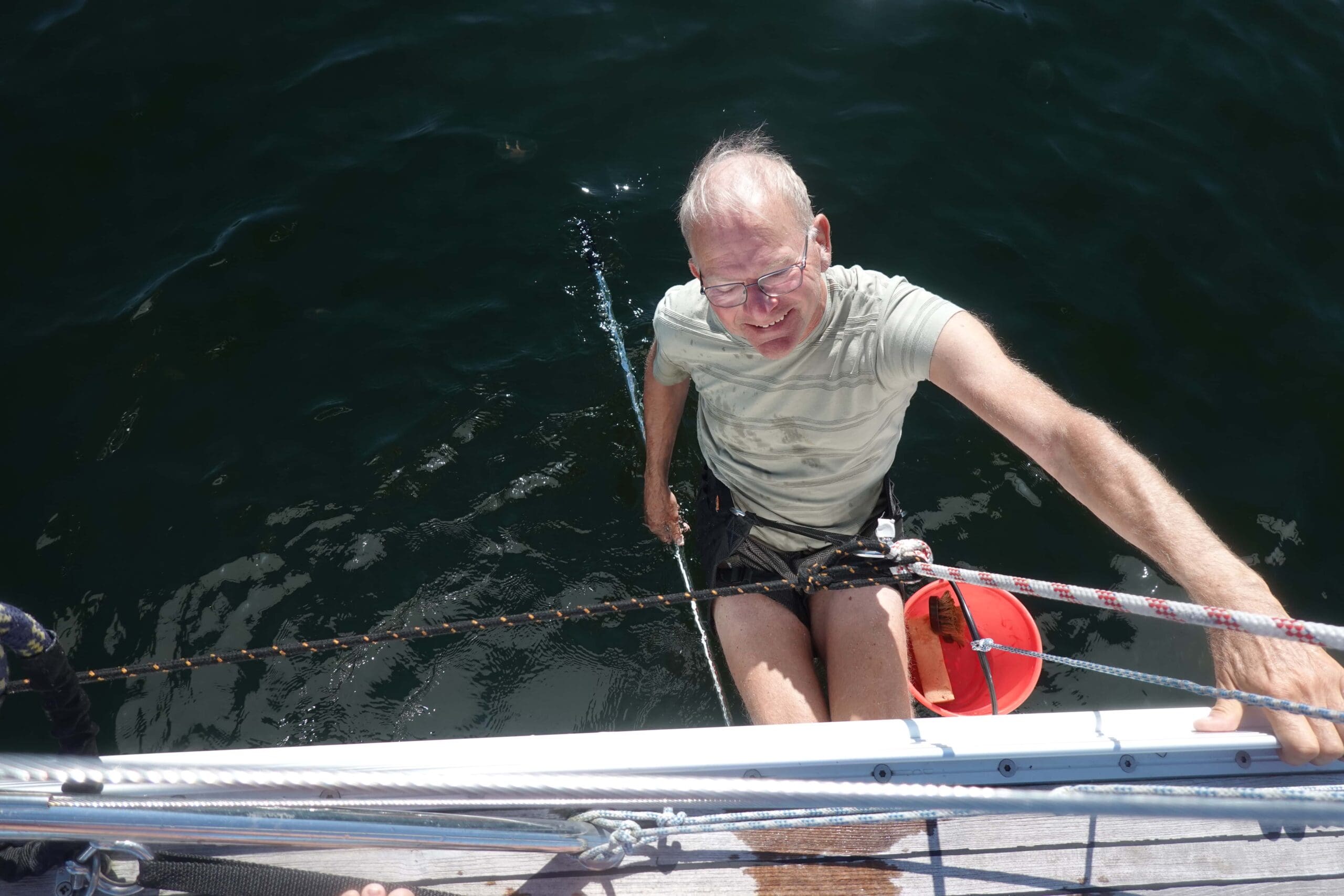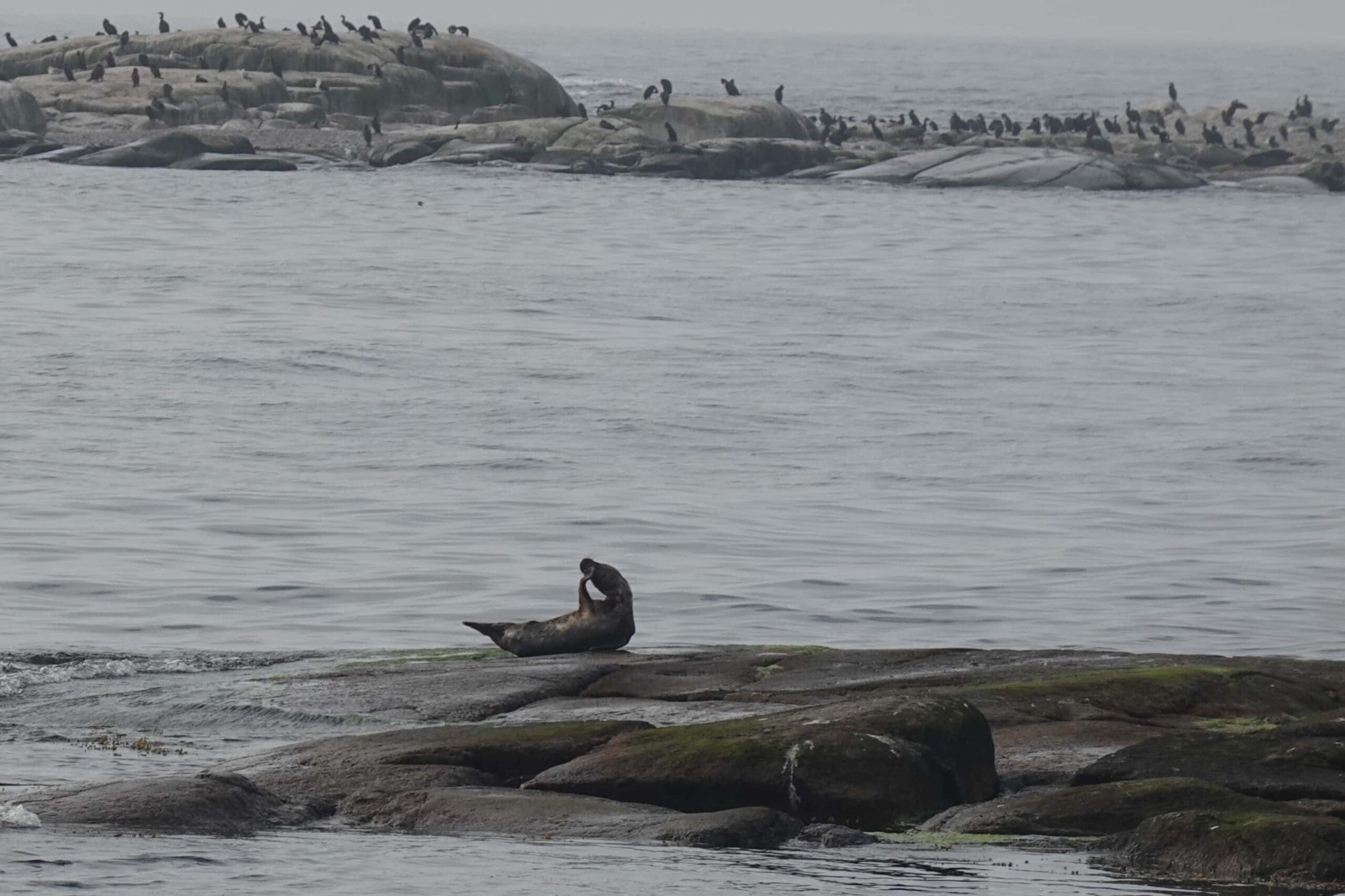 På morgonen hade det hunnit bli kav lugnt. I bakgrunden hör vi sälarnas ylanden, fast egentligen kallas det tydligen för sång. Ingen skönsång direkt, även om det är fascinerande att lyssna till dem. Vi fegar lite och slänger i badtermometern. Vi är ju trots allt i Hanöbukten. När vi badade i närbelägna Sandhamn för snart två månader sedan, var det bara 12,5° i vattnet, kändes som ett vinterbad. Är det under 16° får det vara. Kors, 19° i vattnet och redan 20° i luften! Det var bara att hoppa i. När jag besökte Utklippan för första gången tänkte jag att hamnbassängens tillkomst hade en militär bakgrund, men så fel. Den byggdes 1937-1942 som en nödhamn för fiskare. Man får lite perspektiv på fiskets betydelse då och nu.Hamnbassängen ligger på Norraskär och fyren på Södraskär, men i hamnavgiften ingår roddbåtar som man kan låna för att ro över. Och hamnavgiften? Inte ett ord någonstans om hur den skulle betalas. Foto: LouisePå Utklippan uppfördes en försvarsanläggning som stod klar 1840. Det ena tornet hade en optisk telegraf till Karlskrona och det andra hyste en fyr som dock ersattes av befintlig fyr 1870. Fyren är numera bara pynt. Den släcktes 2008. Ibland är den öppen, så att man kan gå upp och beundra utsikten, men inte idag. Kuriosum: År 1881 strandade furstens av Monaco lustyacht här med ägaren ombord. Vad gjorde han här då?Förutom en stor mängd fåglar, här finns en ringmärkningsstation, huserar mycket säl här. De lockas väl av en hel del sten utanför Södraskär där de kan ta igen sig.Men, vad har hänt med den här krabaten? Varför är den inte med sina kompisar? Först tänkte vi att den lagt sig där för att dö, men den var lite väl livlig för det. Rena pilatesövningarna.Vad i all sin dar håller man på med här då? Man bekämpar utbredningen av vresrosor läser vi på en skylt. Stämplad som invasiv. Jaha. På andra håll välkomnar man vresrosor för att den binder sanden och räddar våra sanddyner. Det är lite som definitionen av ogräs, för vissa kan en växt vara ett ogräs, för andra kan det ses som en välkommen blomma i trädgården. Kan man säga att det ligger i betraktarens ögon vad som är invasivt eller ogräs? I någon mening har väl alla arter någon gång varit invasiva? Men, jag har säkert missförstått något…Till lunch kastar vi loss igen. Hej då Utklippan! En säl har simmat runt ön och tar farväl. Igår var det soligt, blåsigt och guppigt. Vi seglade snabbt. Idag är det raka motsatsen: grått och fuktigt och vi glider fram i långsam takt. Trots det når vi Kristianopel lagom till middagen, precis innan regnet kommer.Enda malören var när vi skulle lägga till och något sket sig när jag skulle fånga bojen. Vår dubbelkäftade bojkrok lossnade två gånger. Jag kunde först inte begripa vad som hände, men det visade sig att den gått sönder och öppnade sig tillräckligt för att bojöglan kunde glida ur. Till slut backade jag ut till bojen samtidigt som Louise stod i land och slackade på förtöjningarna, bytte bojkrok och så in igen. Vår tyska grannbåt en bit bort såg intresserat på och vi såg väl ut som värsta amatörerna antar jag.Här ser man tydligt att det är lågsäsong. Där båtarna under högsäsong ligger packade in med nosen mot kajen ligger nu två båtar som lite nonchalant lagt sig med långsidan mot kajen.Solen jobbar sig fram.Jag fick lära mig att träden är målade på vad som kallas för korväggen. Jag har aldrig sett något liknande i någon annan kyrka. Väldigt vackert. Upplevelsen av kyrkobesöket blev inte sämre av att organisten satt och övade. Till skillnad från hur jag vanligtvis uppfattar orgelmusik, lite släpigt så där, hade han ett otroligt schwung i spelet, lät som någon slags orgelrock, fast förmodligen var det väl Bach eller något liknande.Den här damen var inte så buskablyg.Det sprack upp allt mer och med solsken och sydlig vind upp genom Kalmarsund finns det inte längre någon ursäkt för att inte hissa spinnakern. Det var faktiskt första gången i år den fick lufta sig. Varför det, har jag fått frågan. Tja, det har varit en mestadels blåsig sommar och sällan medvind. Någon gång har det dock varit läge, men då har det varit en kort distans eller så har besättningen tyckt att det är så skönt som det är. Louise fick träna på spinnakertrim. Hennes instruktör måste ha varit lite slö, ser jag nu. Seglet skaver lite mot förstaget.Senare löser jag av och gud så skönt det är. I kalendern står det höst, men det är varmt och det är shortsväder. Sommaren fortsätter och just nu gör det inte ont någonstans. Vi började segla i runt fem knop, men vinden ökade allt mer och farten nådde så småningom nio knop, vilket började bli mer än vad som var hälsosamt för mig och en oerfaren gast. Jag får Polen 2017 på näthinnan och schabraket ska ju ner också och helst under ordnade former.Gör man inte honnör med höger arm? 🙂 Lotsbåtsförare Micke möter upp, kort efter det att hans lotskollega tutat på oss när han skulle ta ut ett fartyg ur hamnen. Jag tyckte fartyget som kom ut från hamnen började gira söderut så då blir det ju bra att ta ner seglen lite norrut tänkte jag, men istället var det precis dit de skulle. Ja, ja…Jag kastade mig iväg för att handla lite och fick ett första intryck av staden. Ja, det är alltså Kalmar vi är i, om inte det framgick.Odd Fellow-huset i Kalmar anses tydligen vara stadens främsta exempel på jugendstil och framför det en liten park med paviljong. Ett första gott intryck av stan.Gästhamnen ligger mitt i smeten invid Linnéuniversitets nya campus. Rätt läckert, faktiskt.Micke fick en paus och kom ner och hälsade på. Han var med och seglade sommaren 2023 och hör till den skara tidigare gastar jag gärna återser och upprätthåller kontakten med. I sommar hade han seglat med sin flickvän på hennes båt och