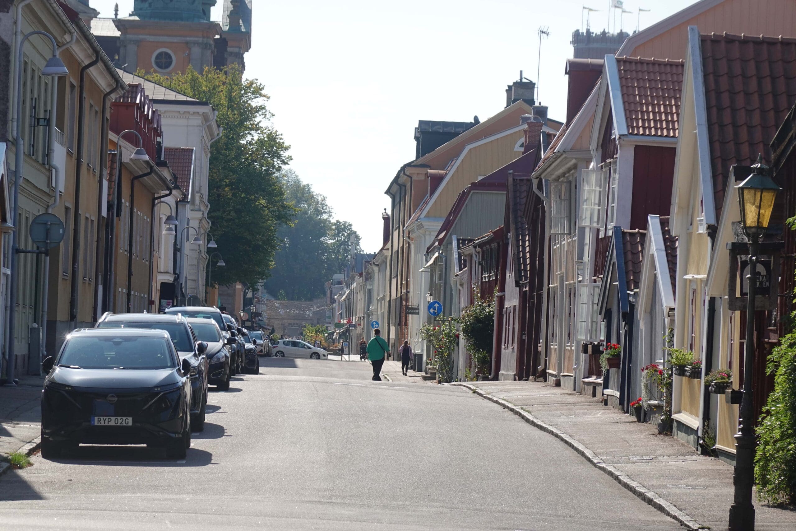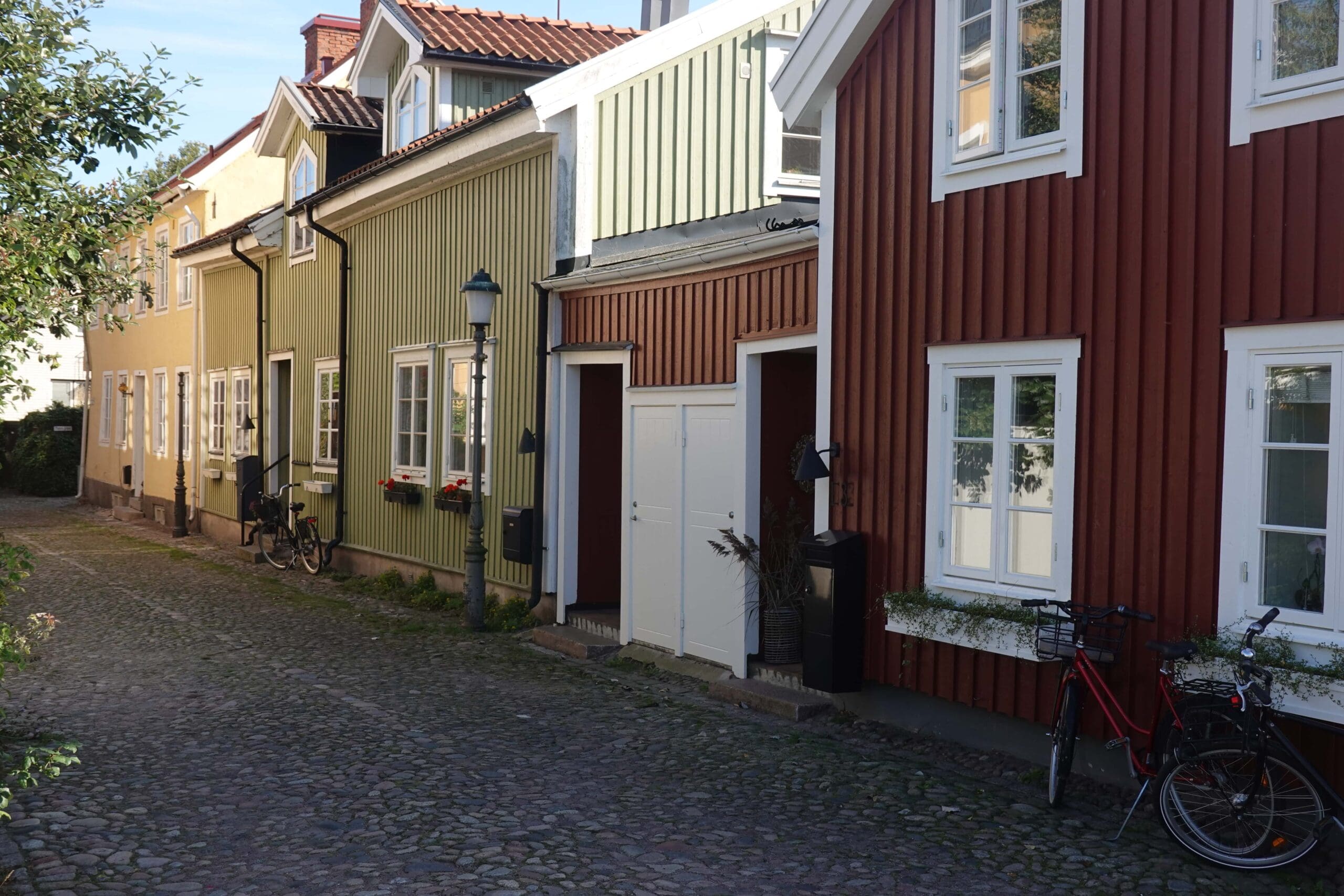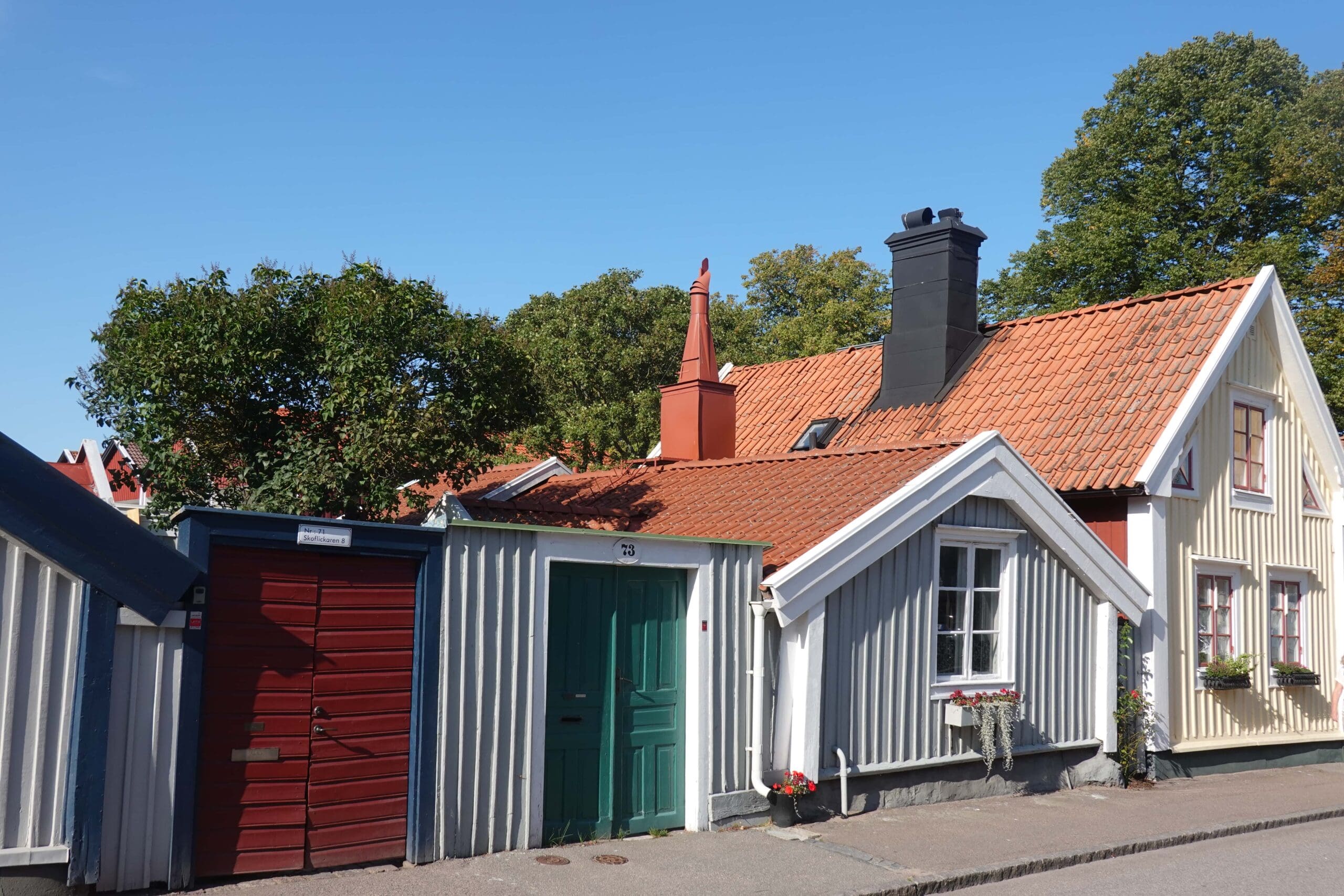 Staden Kalmar låg till en början lite väster om slottet och kallas följaktligen Gamla stan idag. På 1650-talet flyttades centrum till sitt nuvarande läge på Kvarnholmen.I Kalmar finns även Sjöfartshögskolan. Sjöfartsutbildning har det funnits i Kalmar sedan 1843, numera är skolan en del av Linnéuniversitetet. Kolla in vilken kommandobrygga man försett skolan med.Det gamla vattentornet är idag ombyggt till bostadshus med 11 lägenheter på 15 våningar. Till skillnad från i Turning Torso, där fönstren bara lär går att öppna 10 cm, finns det tydligen inga sådana spärrar här. Håll i dig, du som sitter och solar!Tripp, Trapp, Trull kom det spontant ur Louises mun. Mycket riktigt, det var precis det namn som de här husen har. Nu är vi tillbaka på Kvarnholmen och stans nuvarande centrum.Även Kalmar hade ett skeppsbyggnadsvarv, lite mindre än de stora bjässarna, som precis som de övriga svenska varven gick omkull under sjuttio- och åttiotalet. Idag är det bara namnet som minner om detta: Varvsholmen. I förgrunden är det några som förstått att det fortfarande är sommarväder och lagt sig för att sola och njuta av värmen.Ett Öresundståg. Borde det inte heta Kalmarsundståg? 😉Vi fortsätter vår upptäcktsfärd på Kvarnholmen.Området har ett spännande namn: Kattrumpan.Vi rullar in mot centrum igen.Kalmar överraskar och charmar oss.Vi fick inte nog av gamla hus i nuvarande centrum, så vi cyklade ut mot Gamla stan.Villa Villekulla-trädgård.Här var fullt av elever från Lars Kaggskolan som var ute och rörde på sig. Vi frågade en kille vad de gjorde, men fick ett lite diffust svar. Men, det verkar som om det var någon slags inspark för gymnasieettorna.När Micke berättade för oss att det fanns lite gamla hus här tycker jag nog att han tonade ner hur fint det var.Så stöter vi på ytterligare en inspark eller nollning, men nu är eleverna äldre, så vi antog att det nu var studenter på Linnéuniversitetet som var ute och rörde på sig.En del passade på att ta ett dopp, trots att det var rätt blåsigt.Vi cyklar vidare och tillbaka mot båten. Vilken fin stad du bor i Micke och alla ni andra Kalmarbor också förstås.Vi avslutar vår slow sailing med en konsert på slottet. På slottet spelar kammarmusikorkestern Camerata Nordica. Man hade en gästsolist, Manuel Vioque-Judde på viola, men jag tycker nog att det hade räckt bra med förste violinisten och orkesterledaren Fanny Robilliard. Det var ett sjujäkla driv i hennes spel. Det mest njutbara var det första av två Sjostakovitj-stycken (två stycken för stråkoktett opus II). Det andra stycket (violasonat opus 147) var ett riktigt sömnpiller, möjligen påverkat av bristen på syre i lokalen. Kort efter det att han skrivit klart stycket dog han faktiskt. Efter paus nytt syre och Beethoven (stråkkvartett nr. 16 opus 135 i F-dur). Väldigt vackert.Nu har vi faktiskt ägnat oss åt slow sailing under ett dygn. Det kanske leder tanken fel, för egentligen har vi ju inte seglat alls, vi har givit oss tid att se oss om på land, vilket egentligen är vad jag menar med slow sailing. De här gubbarna kanske också tycker att de ägnar sig åt slow sailing. De rörde sig knappt, men de såg lika glada ut för det när de skålade med oss med sina kaffemuggar. Ytterst märklig farkost. Såg ut som en klassisk trämotorbåt som de satt en mast på, på vilken de hissat ett segel med hopsydda trasor. Envar blir salig på sin fason 🙂 Enligt prognosen skulle det bli 24° idag.Vi seglade nog närmre Öland än vad jag gjort tidigare. Kusten blev mer spännande när vi kom norr om Borgholm och följde Stenkusten upp mot Sandvik. Öppet och vackert. På håll såg det ut som en lång sandstrand, men det var nog inget annat än det namnet antyder, sten.Jag hade blivit inspirerad av en av mina gastar, René, att lägga till i Sandvik, hennes sommarparadis. Det rådde ingen trängsel i den rätt mysiga hamnen. Bebyggelsen var blandad, gammalt, halvnytt och nytt. En del nya hus verkade dock vara byggda lite för nära vattnet så att man fått bygga någon slags vall vid strandlinjen. Om de få små fiskebåtarna och den stängda fiskaffären vittnade om att fisket fortfarande var livaktigt eller om det vittnade om raka motsatsen fick jag inte klart för mig,Micke hade tipsat oss om ett mysigt fik i Södvik. Det var en bit bort så trots att det hunnit bli sen eftermiddag tog vi fram cyklarna och trampade iväg, men medvinden gav oss bra fart. Jag undrade vad det var för fåglar vi hörde. Louise hävdade att det var kor. Enligt Google skulle fiket vara öppet. Lite snopet då att mötas av den här skylten.På tillbakavägen var det inte medvind, så nu behövde vi verkligen en energiinjektion och stannade till för en glassfika vid den stora väderkvarnen, för övrigt en av Sveriges största.Efter en varm dag, snart middag, immande glas, visst blir man sugen?Säkert bra att påminna sig om det ibland, men just här och nu kändes det som en onödig uppmaning.Vi tog en promenad söderut från hamnen. Stenigt och vackert. Påminner om Fårö.Och var bör man hitta Ölandssten om inte på Öland? Vad är Ölandssten undrade Louise. Så här förklarar Gemini det: ”Ölandssten är en svensk kalksten från Öland som är känd för sina varma färger och fossiler.”Solen hade gått ned i säck, men vände man blicken uppåt och österut så reflekterades molnen fortfarande av solstrålarna.Du kanske noterade att vi låg mot en boj igår. Inte långsides mot bryggan. Tänker på Beatles: ”It’s been a hard day’s night, And I’ve been working like a dog”. Fast ”I” borde bytas ut mot ”we”. Jag vaknade strax efter midnatt av att det gungade rejält. Jag gick upp och kollade läget och försökte sedan somna om. Jag kollade prognosen och i byarna skulle det blåsa västligt och 10 m/s, d v s rakt in i hamnen mot vår sida. Hade jag missat att kolla prognosen igår och förförts av