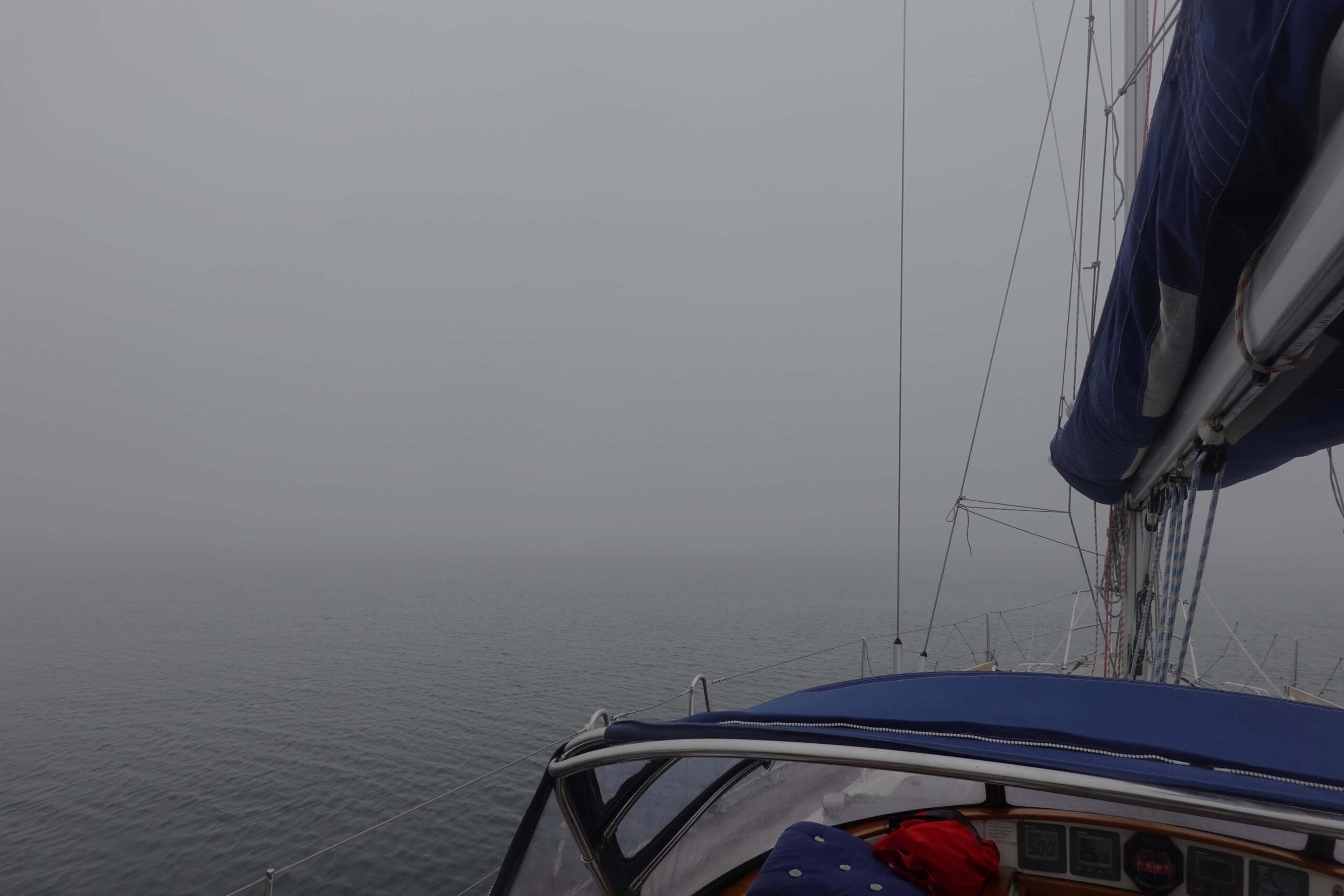 Louise ville mjuklanda lite efter sin resa, så det blev en lugn förmiddag, innan vi kastade loss. Vi lämnade Turbinhamnen i dis. Ett suggestivt ljus ramade in både Malmö och Öresundsbron. Vi envisas med att segla och inte bara segla utan t o m kryssa, fast det knappt blåser något. Man kunde verkligen tala om slow sailing, även om nu detta motto mer syftar på tempot i land. Jag fick nästan en känsla av att segla med handbromsen i. Den lilla vind som var vred sig till och från och efter vissa slag kändes det nästan som om vi kom tillbaka till utgångspunkten för föregående slag. Lite mindre långsamt borde det väl ändå kunna gå. Loggen hade lagt av, så kanske släpade vi på en del växtlighet som fastnat i loggens givare . Det växte nog på en del andra ställen också och vi funderade över om man skulle kunna stå på varsin sida av båten och dra en tamp längs botten, sätta fast en rotborste i tampen. Lite som när Pippi Långstrump skurar sitt köksgolv. Skulle det kunna fungera?
