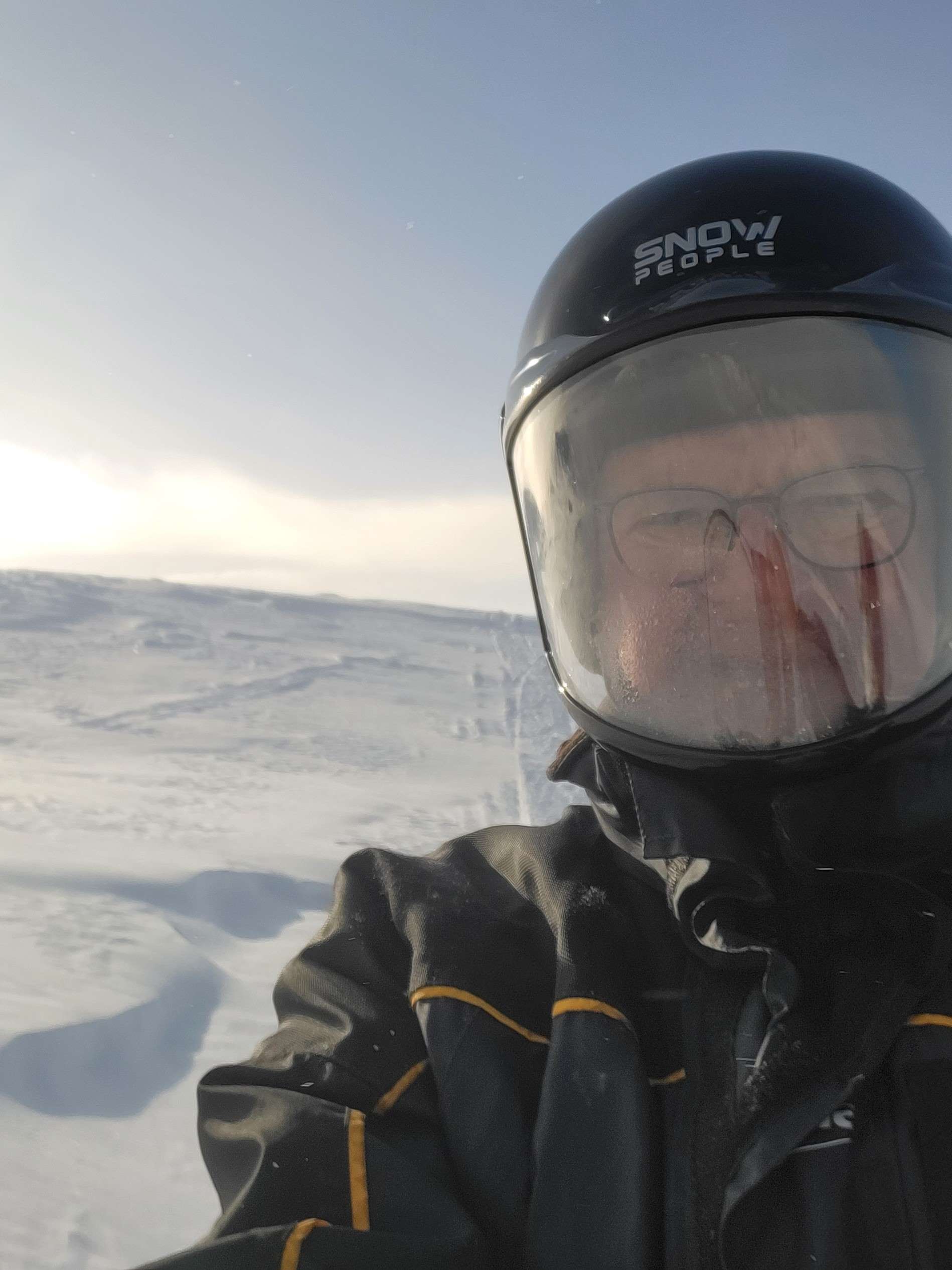 Jag förundras över att jag faktiskt är i fjällen och kör skoter, så detta är en selfie jag nog aldrig hade trott att jag skulle ta. Jag som har greppat min imaginära hagelbössa när horderna av skoteråkare kommit och stört friden och lämnat avgaser efter sig när vi velat njuta av friden i Funäsdalsfjällen. Men, det går inte att förneka. Kul var det!