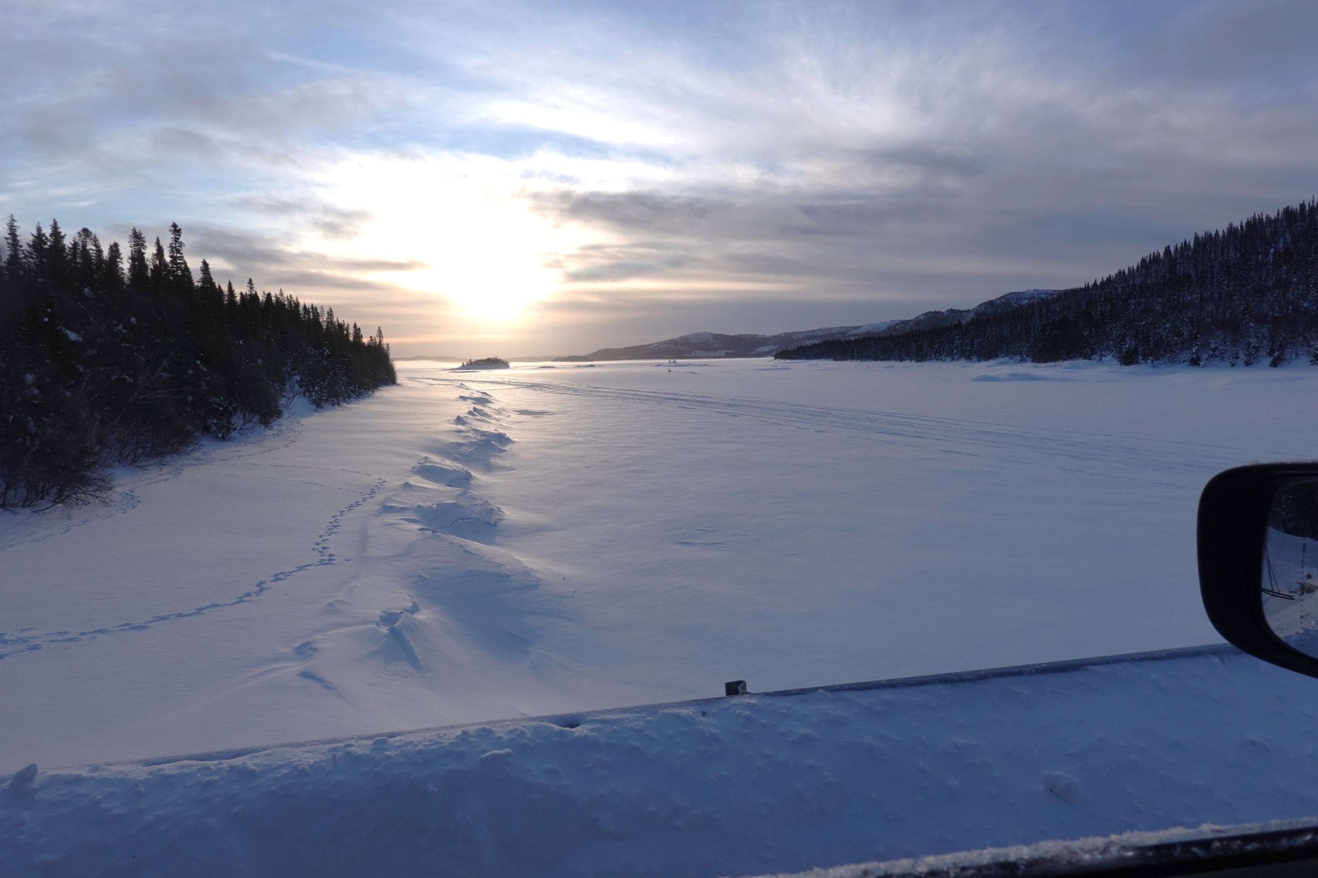 Och hur gick det då? Som nybörjare var det ju en viss anspänning förstås. Det knepigaste var egentligen att se var skoterleden gick någonstans. Allt var lite jämnvitt. Ibland visste jag inte heller åt vilket håll jag skulle köra när leden delade sig, men det fanns ju gott om andra som glatt ledde mig åt rätt håll. Visst blev jag omkörd av några skotrar, men jag tyckte ändå att jag körde på rätt bra. Så bra att jag fick förebråelser av Liza för att jag måste ha fuskat, jag kunde omöjligen ha tagit mig runt så snabbt, menade hon. Naturen hann jag inte njuta så mycket av, men kul var det. Nu var det ju inget race på tid, men det verkade få ta notis om. Man körde på i full fart. När jag ett kort ögonblick, nere på isen, vågade kastade ett öga på hastighetsmätaren var jag uppe i 75 km i timmen. Det kändes som en fullständigt svindlande hastighet.